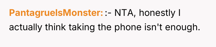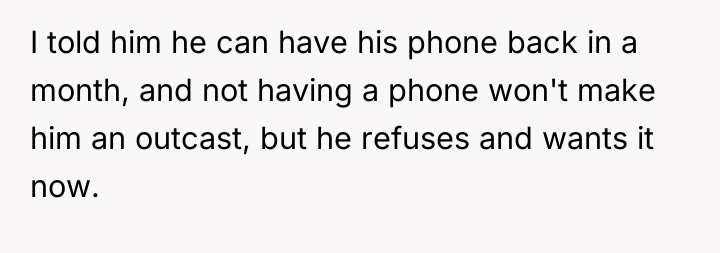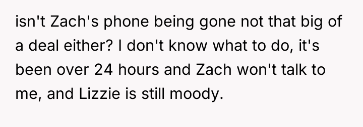 The OP's action was understandable given the severity of the initial transgression, but the duration of the consequence may be counterproductive. A more effective approach would be to link the restoration of the phone directly to specific restorative actions: a sincere, validated apology from Zach, and perhaps performing an act of service for Lizzie to start rebuilding trust. The focus should shift from punishment to repairing the relationship and teaching emotional accountability.