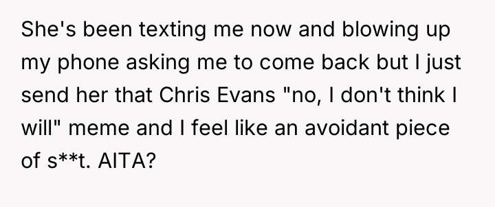 The OP's decision to leave immediately upon turning 18, coupled with their response to the mother's continued contact (using the meme), demonstrates a necessary, albeit emotionally difficult, assertion of autonomy. While the immediate conflict resolution method was confrontational, it was a response to prolonged systemic failure. Moving forward, constructive communication should focus on establishing firm, non-negotiable personal space requirements, enforced by distance rather than confrontation, should any future contact be desired.