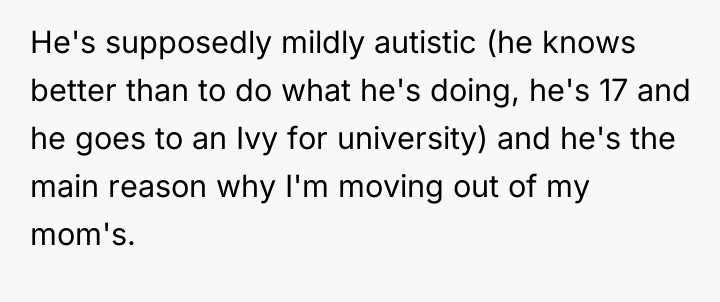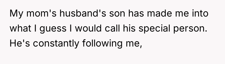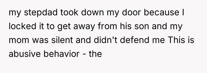 As renowned researcher Dr. Brené Brown explains, “Boundaries are the distance at which I can love you and me simultaneously.” This situation starkly illustrates a complete breakdown of healthy personal boundaries, not only imposed by the stepbrother but tacitly permitted by the mother and stepdad. The stepbrother's behavior—constant following, meltdowns when privacy is enforced, and escalating demands—is characteristic of boundary testing, which, when met with surrender (like the removal of the door), reinforces maladaptive control mechanisms.