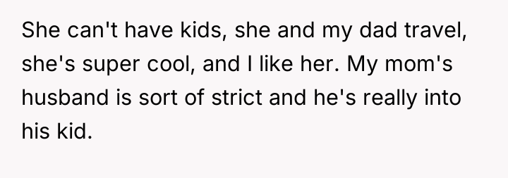 In the fractured landscape of a broken family, a young soul finds themselves caught between two worlds—one filled with warmth and understanding, the other shadowed by control and silence. Their father's new wife offers a breath of fresh air, a rare sanctuary of acceptance and freedom, while their mother’s household becomes a prison of unrelenting pressure and invisible suffering.