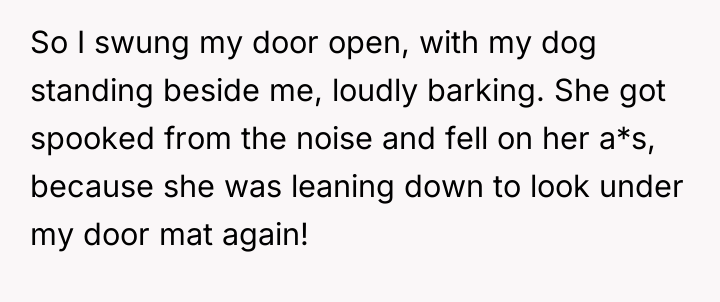 Redditor Catches Nosy Neighbor P*eping Under Her Door, Then Gives The Lady A Near Heart-Attack With Her Dog