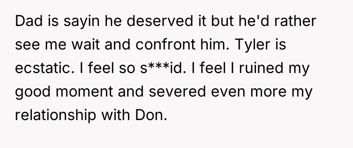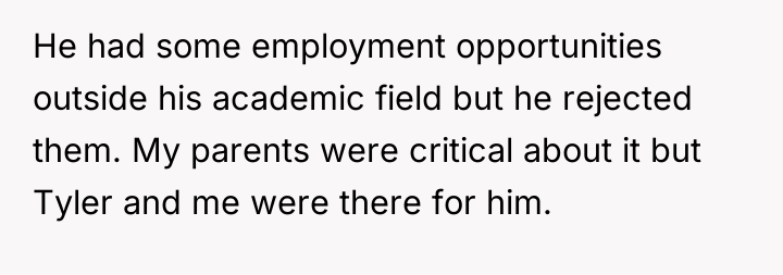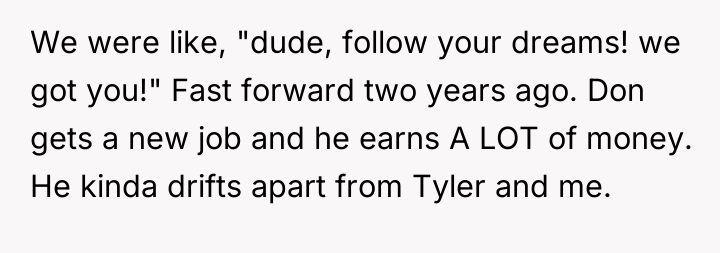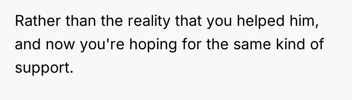 As renowned researcher Dr. Brené Brown explains, “Boundaries are the distance at which I can love you and me simultaneously.” This situation clearly illustrates a breakdown in mutual relational boundaries. During Don’s unemployment, the OP and Tyler established a dynamic of strong financial and emotional support, effectively setting a boundary that allowed them to give freely. However, when roles reversed, Don failed to establish or respect a reciprocal boundary regarding asking for or receiving support, leading to resentment and withdrawal when his needs were not met as he expected.