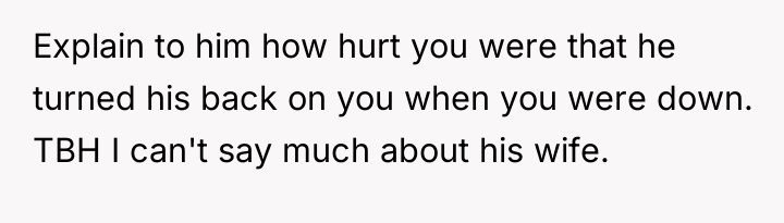 The original poster (OP) is experiencing deep emotional conflict stemming from a significant shift in her relationship with her brother, Don. She supported him during his financial hardship, but when her situation reversed, Don refused aid and subsequently cut off contact. The central conflict arises when OP achieves a long-sought personal success (book publication) and, during a shared family celebration, publicly confronts Don for his self-imposed isolation and perceived hypocrisy regarding shared life updates.