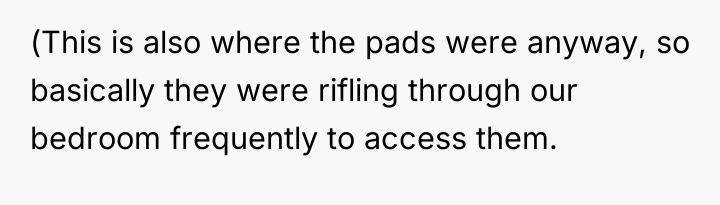 Was the OP justified in securing her personal supplies after months of being taken advantage of, even if it violated the household's unspoken rules about privacy? Or was locking the pads away an excessive response that damaged the relationship beyond repair, especially given the short remaining time in the living arrangement?
