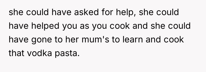 Caught between his desire to support her learning and the frustration of tasting salt-heavy, vodka-soaked pasta, he drew a firm line. He urged her to cook for herself and clean up after, revealing a deeper struggle for respect and understanding in their shared space. This wasn't just about food—it was about the delicate balance of love, effort, and the unspoken expectations that bind a marriage.