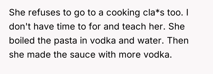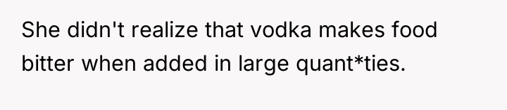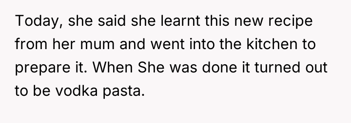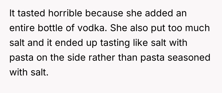 In a home where love simmered quietly beneath the surface, a husband's patience was tested by the chaos his wife unleashed in the kitchen. Despite his expertise as a professional chef, he watched helplessly as her culinary experiments turned into disasters, leaving a trail of mess and disappointment in their wake. The vodka pasta incident was the final straw, a bitter reminder that good intentions don't always translate into good food.