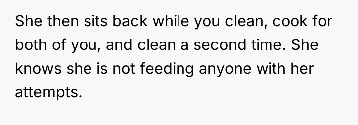 As renowned psychologist Dr. Harriet Lerner explains, “Boundaries are not about controlling other people; they are about taking care of ourselves.” This situation highlights a clash where the husband is attempting to establish a necessary boundary regarding shared household labor and quality control, which has been severely compromised by the wife's lack of skill and poor follow-through.