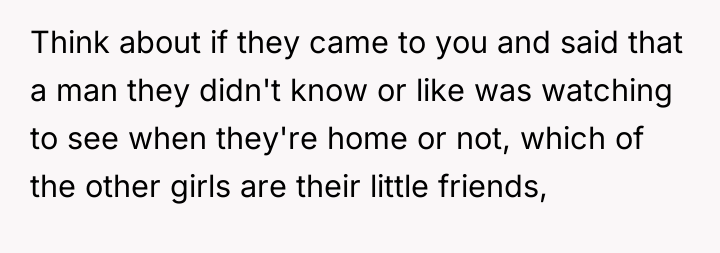 Did the OP overstep by using a direct comparison involving William's daughters to illustrate the severity of her discomfort, or was this necessary confrontation to establish essential boundaries against intrusive surveillance? Readers must weigh the effectiveness of extreme emotional appeals against the need for respectful, direct communication in resolving persistent neighbor disputes.