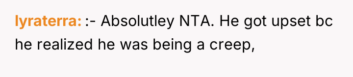 The original poster (OP) felt persistently monitored and controlled by their neighbor, William, leading to high levels of discomfort and a breakdown in the assumed peace of neighborly relations. The central conflict arose from the OP attempting to enforce personal boundaries regarding privacy and behavior, which William consistently ignored until the OP used a direct, emotionally charged comparison involving his daughters to force him to empathize with her feeling of being watched.