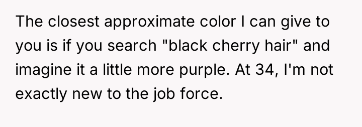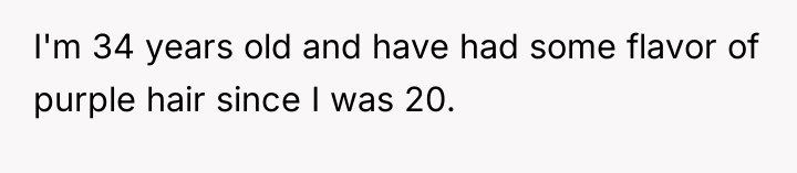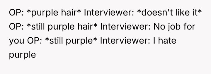 AITA for showing up to a job interview with purple hair that I've had since I was 20?