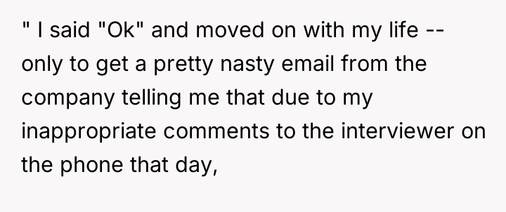 The interviewer’s final email requesting the OP refrain from future applications, stemming from the phone conversation, indicates a significant escalation of unprofessional behavior on the company's part. While the OP defended their track record, the interviewer reacted defensively and personally. The OP's actions in the interview and subsequent call were appropriate self-advocacy, pushing back against unwarranted criticism. For future interactions, the OP should continue prioritizing companies whose stated culture genuinely aligns with their comfort level regarding personal presentation, or, if necessary for a highly desirable role, strategically assess the true cost of temporary conformity versus authentic self-expression.