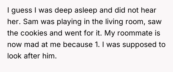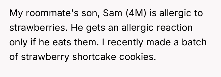 AITA for refusing to pay the medical bills for my roommate's son after he had an allergic reaction eating my cookies?