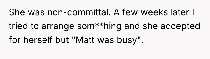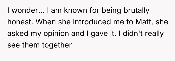 As renowned researcher Dr. Brené Brown explains, “Boundaries are the distance at which I can love you and me simultaneously.” This situation highlights a significant breakdown in boundaries and authentic communication within the friendship between the OP and Ally. The OP, known for her honesty, initially voiced a strong negative opinion of Matt, which established a difficult starting point for his relationship with the OP. Ally’s subsequent actions—engineering distance between Matt and the OP—were a form of boundary setting, albeit one based on evasion rather than direct communication.