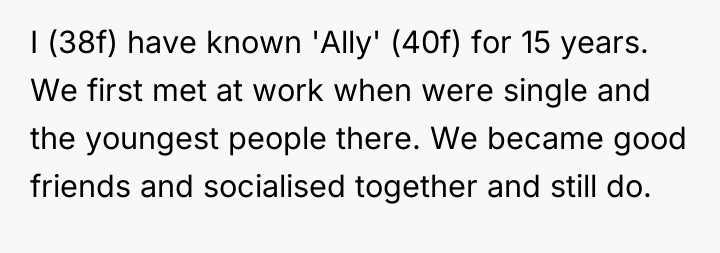 Considering the OP's past critical comments about Matt and Ally's desire to shield her partner from perceived judgment, was the OP justified in reacting strongly upon learning the truth, or should she have accepted the situation quietly to preserve the friendship? Where does the responsibility lie in maintaining honesty versus protecting social harmony within long-term friendships?
