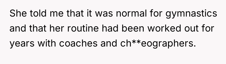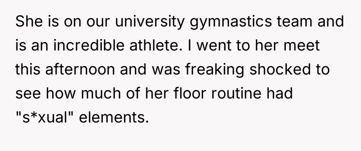 AITA for demanding that my girlfriends gymnastics routine be less "s*xy?"