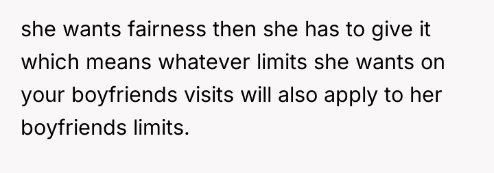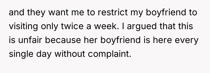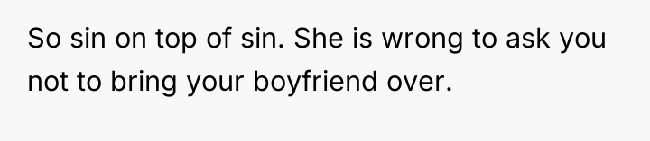 The original poster (OP) feels unfairly targeted because their roommate requires them to limit their boyfriend's visits, a restriction not applied to the roommate's own boyfriend who lives there nearly full-time. The central conflict revolves around the OP's perceived right to host their partner versus the roommate's requirement to adhere to religious modesty practices within the shared home, especially when other non-paying residents are present daily.