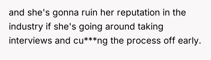 The original poster is deeply concerned that his girlfriend's highly critical and selective approach during her job interviews is damaging her professional reputation and delaying their planned move. The girlfriend strongly believes that her actions—thoroughly vetting companies for safety and practice standards—are normal and necessary for high-level candidates, viewing it as a mutual evaluation process rather than self-sabotage.