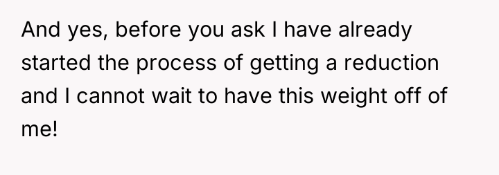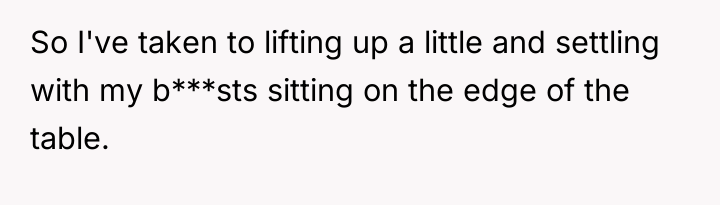 The core issue here is not the OP's posture itself, but the fiancé's interpretation and subsequent aggressive communication. The OP's motivation appears entirely rooted in managing physical discomfort associated with body size, a factor they are actively seeking to resolve medically. In contrast, the fiancé projected inappropriate intent onto a neutral physical action, likely stemming from insecurities related to sharing her partner’s attention or unfamiliarity with the friend group’s established dynamics. The fiancé’s reaction—calling the OP names and demanding exclusion—is a severe overreaction that violates fundamental principles of respectful group interaction and hospitality. The OP appropriately apologized for causing *discomfort* and offered a plan for future changes (the reduction surgery), but they should not have apologized for the *intent* behind a necessary physical adjustment.