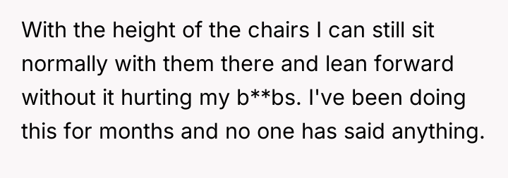 The OP's actions regarding their posture, taken in isolation as a measure to manage pain, were appropriate given the physical constraints of the table design and their body. Moving forward, the OP needs to have a mediated conversation with Friend A (the host) about the fiancé's behavior, focusing on establishing clear ground rules for social conduct rather than conceding to the accusation. A constructive approach would be to agree with Friend A on a temporary adaptation (e.g., sitting slightly away from the table edge) until the surgery, while Friend A addresses the need for respectful communication from his partner.