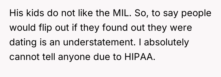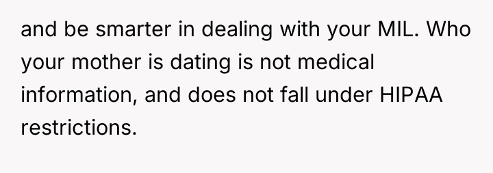 My MIL is dating my husband's worst enemy and is mocking me because HIPAA keeps me quiet