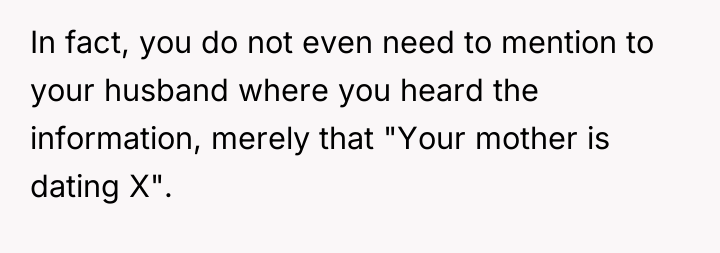 The original poster (OP) is caught in a severe professional and personal conflict, bound by patient confidentiality (HIPAA) while being directly threatened and emotionally manipulated by their mother-in-law (MIL). The central conflict revolves around the OP's duty to remain silent about seeing the MIL with a controversial dating partner versus the intense emotional pressure to inform their husband about the situation.