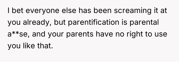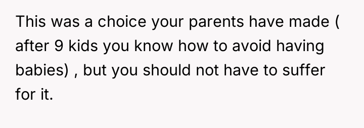 As renowned researcher Dr. Brené Brown explains, “Boundaries are the distance at which I can love you and me simultaneously.” This situation illustrates a severe breakdown of healthy boundaries within the family system. The OP and her twin brother, being the only two physically and mentally healthy children in a family of nine, have been involuntarily cast into the role of primary caregivers and financial providers for years, not just for their siblings but also for their parents' lifestyle choices.