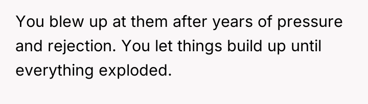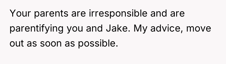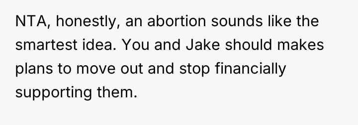 The parents' decision to have another child while already financially precarious and dependent on their healthy children's labor demonstrates a significant lack of responsibility and a failure to acknowledge the emotional and financial debt incurred by the OP and Jake. The OP's explosive reaction, including suggesting an abortion, while harsh, is a predictable outcome of prolonged emotional suppression and resentment over constantly deferred personal goals (the trip, moving out). Her subsequent departure, while perhaps not the most strategic communication choice, is a clear attempt to enforce a boundary when verbal communication failed to change the underlying unsustainable dynamic.