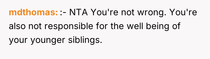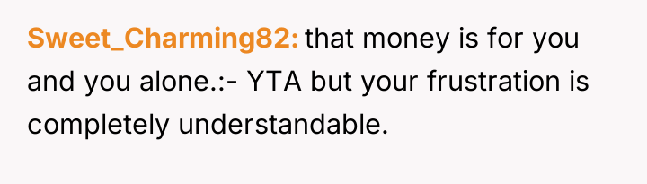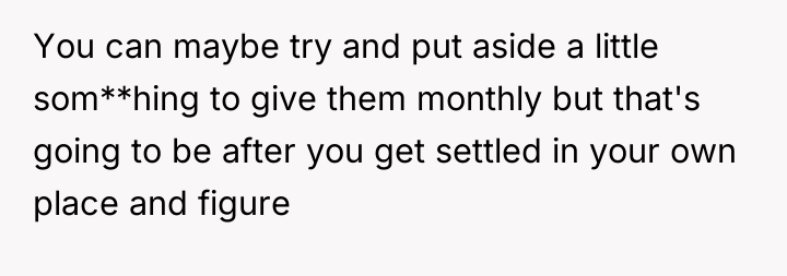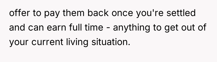 The brother's reaction, viewing the OP as the 'ass' for leaving, suggests he may be either more deeply conditioned to accept the role of the helper or is currently feeling the increased burden of the OP's absence. Professionally, the OP's actions to remove herself from an abusive financial and emotional situation were appropriate for self-preservation. For future interactions, the OP needs to approach negotiation from a position of established physical distance, focusing on clear, non-negotiable terms for financial independence rather than reacting to crises. She needs external support to solidify her exit plan.