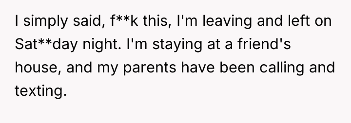 Given the OP's feelings of being trapped and used versus the parents' overwhelming responsibility and the brother's plea for support, the core question remains: Is the OP justified in prioritizing her immediate autonomy and well-being by leaving, or is she obligated to stay and contribute to the family's immense needs, even at the cost of her own future?