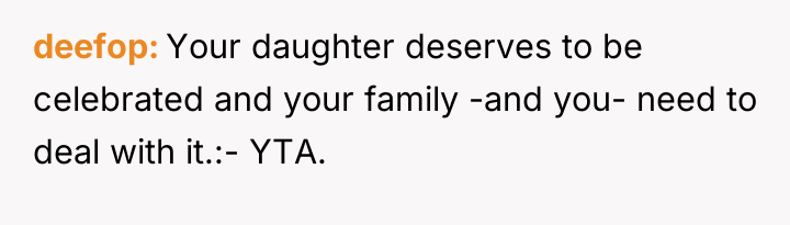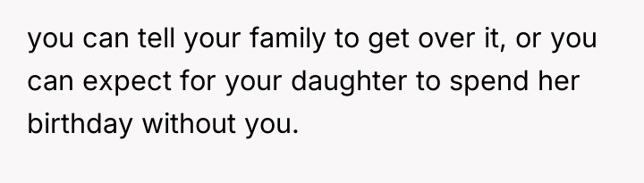 When faced with the consequences of broken trust with her family versus her husband's demands for independent action, whose responsibility was it to manage the boundary regarding the daughter's celebration: the OP, who agreed to the family's terms, or the husband, who rejected those terms entirely? Should the OP apologize for her reaction to the public betrayal, or is the husband accountable for violating the agreed-upon secrecy and disrespecting the family's profound agreement?