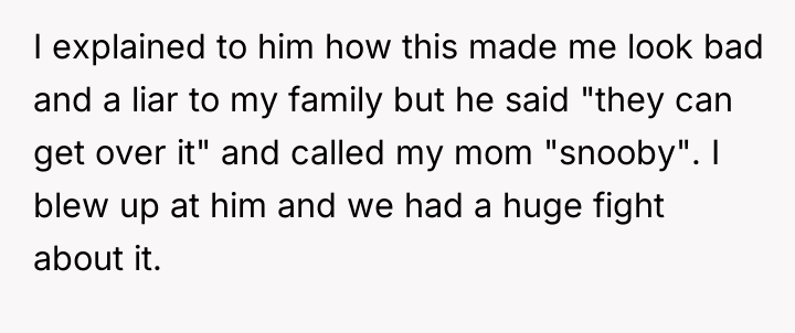 The OP’s reaction, while likely intense due to the stress and betrayal, was a direct consequence of the husband's breach of trust. Requiring an apology from the OP for reacting to being publicly exposed as deceitful is inappropriate. The constructive recommendation is for the couple to halt discussions about apologies and instead engage in a structured conversation about shared family values. The husband must first acknowledge the direct harm caused by his public disregard for the agreed-upon boundary before any discussion about future celebrations can proceed.