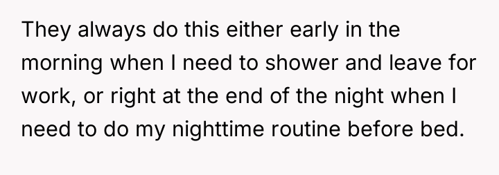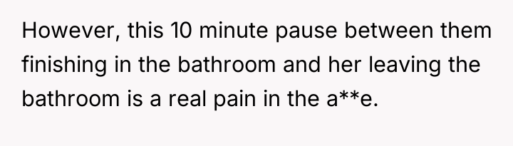 Is the OP justified in directly confronting the girlfriend about the specific 10-minute delay tactic, or would directly addressing the showering behavior itself be a more appropriate boundary to set in a shared living situation?