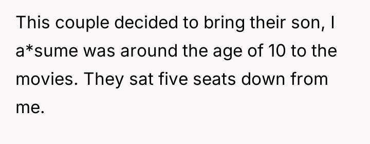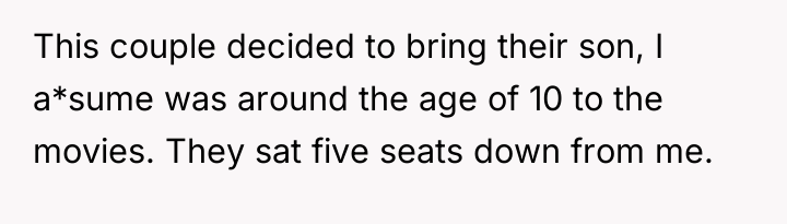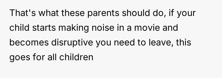 Given the disruptive nature of the behavior and the parents' apparent inability to control it, was it reasonable for the OP to expect the parents to leave the theater, or did the parents have the primary right to remain, prioritizing their son's experience over the comfort of strangers?