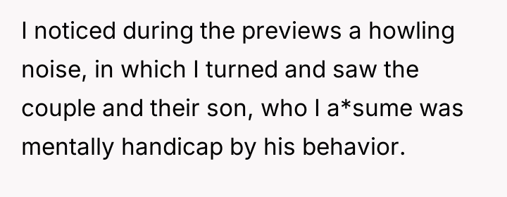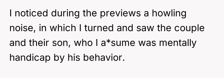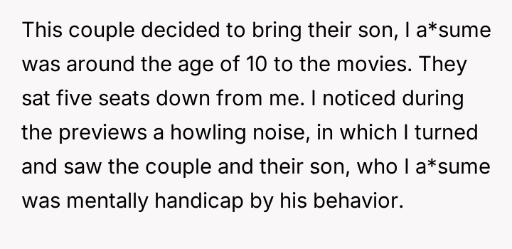 AITA for getting annoyed at a couple for bringing their mentally handicap son to the movie Halloween, in which he yelled and got up every five minute, the WHOLE movie?