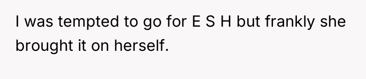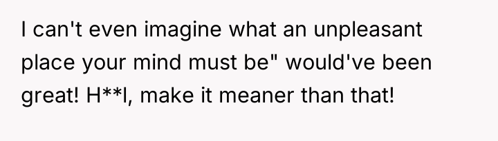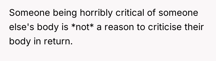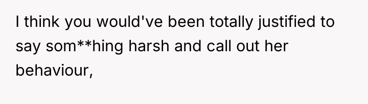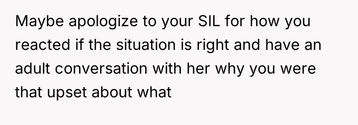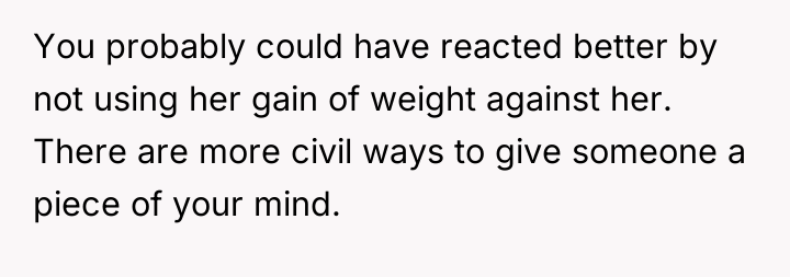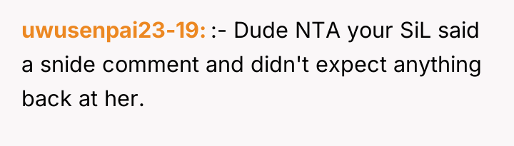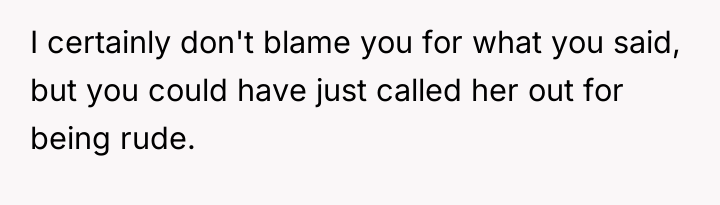 The OP's action, while emotionally satisfying in the moment, was not the most constructive approach. A more effective strategy would have involved immediate, firm boundary setting directed at the sister-in-law's behavior, followed by withdrawing support rather than engaging in a tit-for-tat insult exchange. For future situations, the OP should focus on addressing the inappropriate behavior directly and calmly ('That comment was unkind and unnecessary') rather than focusing on the sister-in-law’s sensitive personal details as ammunition.