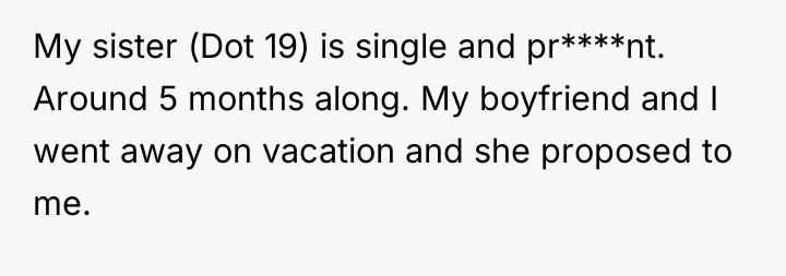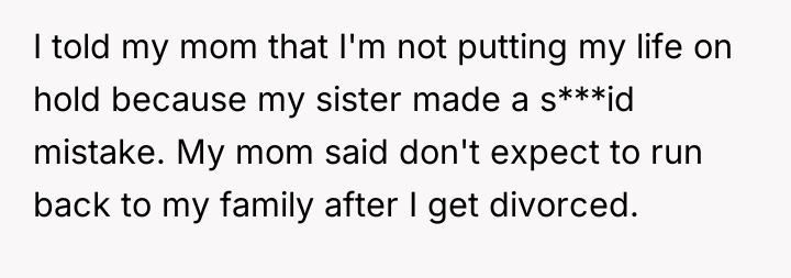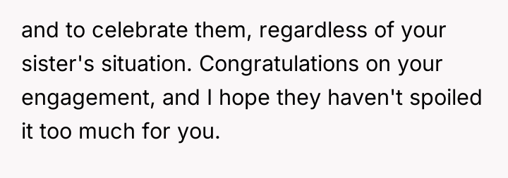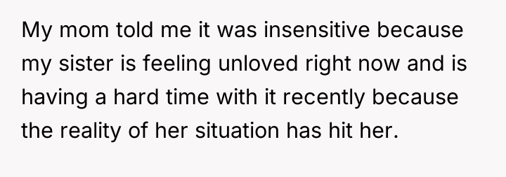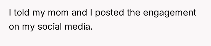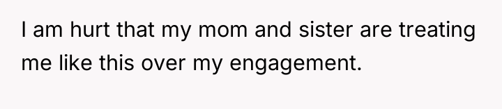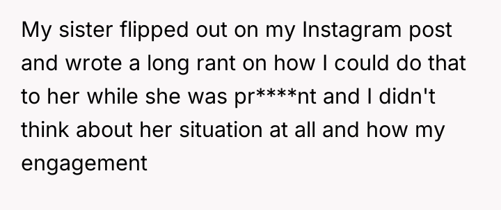 This situation highlights a significant clash of personal narratives and boundary setting. The sister, likely experiencing heightened stress, vulnerability, and perhaps feelings of being 'left behind' due to her unplanned pregnancy, perceived the engagement announcement as a direct, personal slight—a public affirmation of the stable partnership she lacks. The mother appears to be prioritizing the emotional needs of the struggling daughter (the sister) over validating the joy of the other daughter (the OP), leading to an implicit triangulation and emotional pressure on the OP.