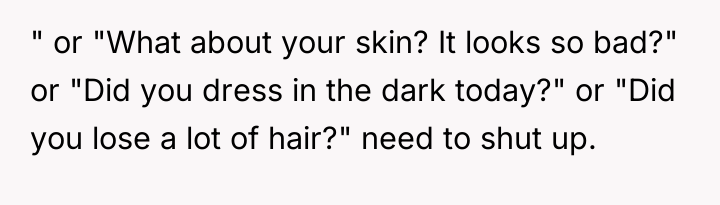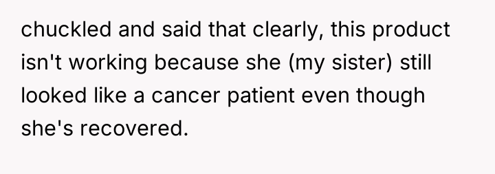 As renowned researcher Dr. Brené Brown explains, “Boundaries are the distance at which I can love you and me simultaneously.” In this scenario, the OP's wife fundamentally failed to respect the necessary emotional boundary protecting the sister, who is dealing with severe health trauma and resulting insecurity. The wife, leveraging her expertise as a makeup artist, projected an inappropriate standard onto the sister, dismissing her recovery status with a comparison that targeted her self-image.