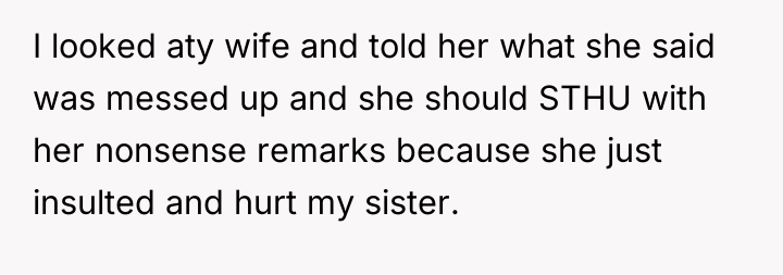 AITA for telling my wife to STHU because of the remark she made towards my 16yo sister?
