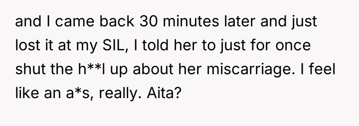 AITA for telling my SIL to stop talking about her miscarriage?