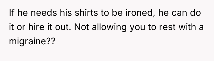 While the OP's physical and emotional state provided context for the explosion of frustration, immediately demanding separation and involving family to enforce it was an extreme measure. A more constructive approach would have involved clearly communicating the non-negotiable nature of health-related accommodations (like quiet during a migraine) beforehand, perhaps establishing clear chore agreements that include consequences other than immediate eviction. Future success requires direct, calm communication about the impact of his inaction on the pregnancy, rather than escalating to crises management.