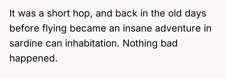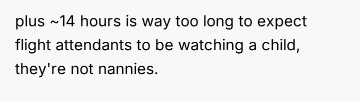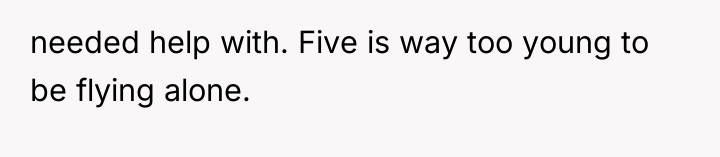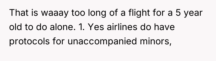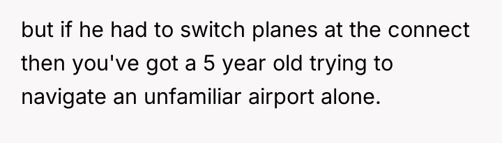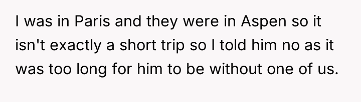 The OP’s primary motivation appears rooted in attachment needs and a perceived duty of care, especially considering the son's young age and the extreme distance involved (Aspen to Paris). Refusing to let a five-year-old travel unescorted across multiple time zones and international borders, even with flight attendant supervision, is a reasonable boundary for many parents. The husband’s reaction—making a snide comment upon arrival—suggests he experienced the OP's refusal as a direct challenge to his competency as a father and planner, turning a logistical disagreement into a power struggle. His subsequent resentment indicates that while he conceded in the moment, he did not accept the underlying premise of her objection.