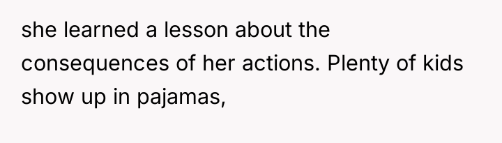 Was the father's decision to allow his daughter to attend school in pajamas an effective, harmless lesson in natural consequences, or was it an emotionally punitive action that undermined parental unity and unnecessarily exposed the child to social discomfort? Should consistency in routine outweigh the immediate need to de-escalate a morning conflict?