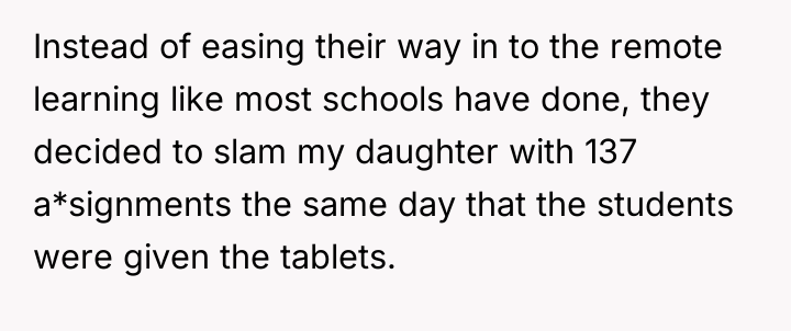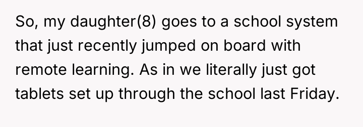 A mother watches helplessly as her eight-year-old daughter is thrust into a whirlwind of remote learning, overwhelmed by an impossible mountain of 137 assignments dumped on them the very first day they receive their school tablets. The sudden, relentless pressure crushes any hope of a gentle transition, replacing learning with stress and exhaustion.