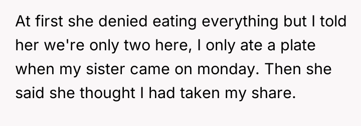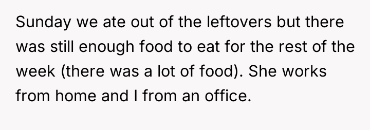 The partner’s focus on the ease of buying more food often masks an underlying issue of entitlement or poor communication regarding shared assets. While the OP's physical size difference mentioned in the text is irrelevant to the principle of fairness, his reaction of 'snapping' suggests bottled-up frustration, possibly related to perceived power imbalances or feeling unheard. Moving forward, the OP and his partner need to establish explicit, proactive communication protocols for shared food distribution immediately after large events. A constructive recommendation would be to clearly divide leftovers into separate portions immediately after the party, or for the partner to ask directly before consuming a significant portion that the OP was clearly expecting to eat later.