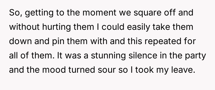 Was the OP justified in using his superior physical skills to silence the persistent insults from his girlfriend's brothers, or did his actions escalate a situation inappropriately, causing unnecessary damage to his relationship with his partner and her family? The core question remains whether self-defense against verbal and social aggression justifies a public demonstration of dominance.