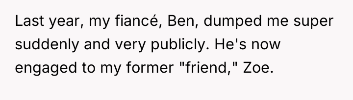 The original poster is struggling with feelings of hurt and betrayal following a public breakup, complicated by her younger sister wanting to wear an expensive, special dress to the ex-fiancé's wedding. The central conflict arises from the sister's demand, which disregards the OP's emotional context, contrasting sharply with the OP's need to set a firm boundary around a personal, valued item.