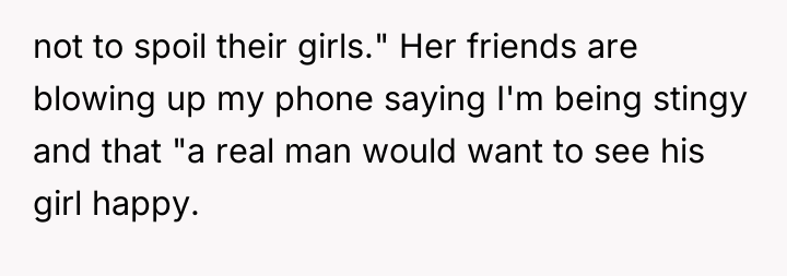 As renowned researcher Dr. Brené Brown explains, “Boundaries are the distance at which I can love you and me simultaneously.” This situation highlights a significant boundary failure, initiated by the girlfriend's escalating demands and external pressure from her friends, which targets the OP's sense of responsibility and masculinity.