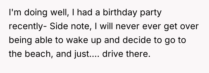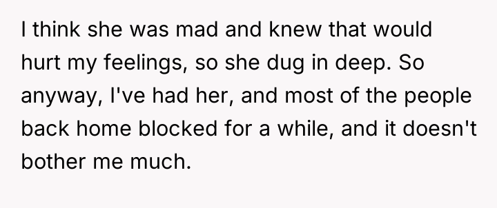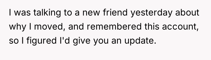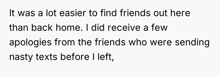 Now, in a new city, living with her supportive uncle and surrounded by fresh faces, she’s slowly rebuilding a life that feels true to herself. The echoes of hurtful messages have faded into distant apologies, and while some regrets linger—like the lost keepsakes in a manic purge—her heart is lighter. This is a story not just of escape, but of resilience, growth, and the quiet power of choosing oneself.