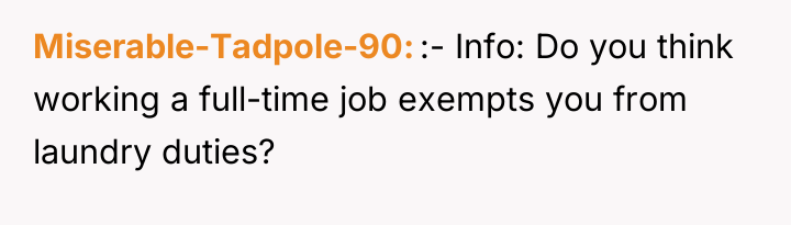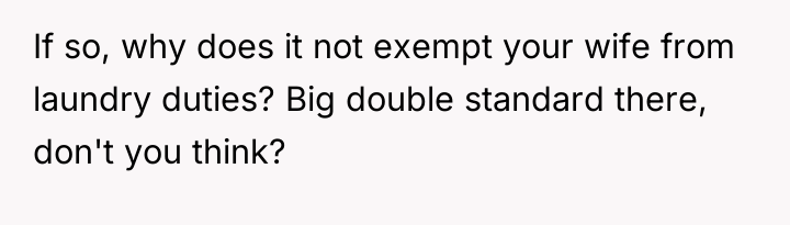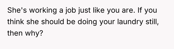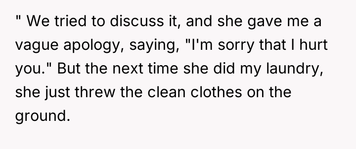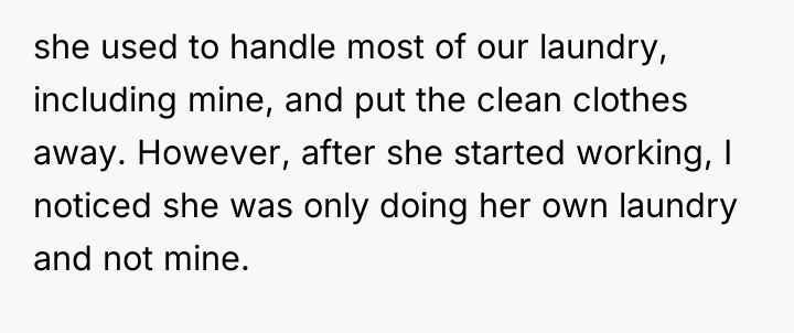 The subsequent action of throwing clean clothes on the ground is not merely about laundry; it is an act of passive aggression and contempt, which damages marital trust far more severely than neglecting a chore. The OP’s feeling of having been used is a rational response to this perceived abandonment of shared commitment. To handle this constructively, the couple needs to move beyond the specific task of laundry and establish clear, mutually respected boundaries regarding contribution, respect, and communication moving forward.