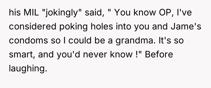 AITA for cu***ng off my MIL after she made a joke about poking holes in our condoms?